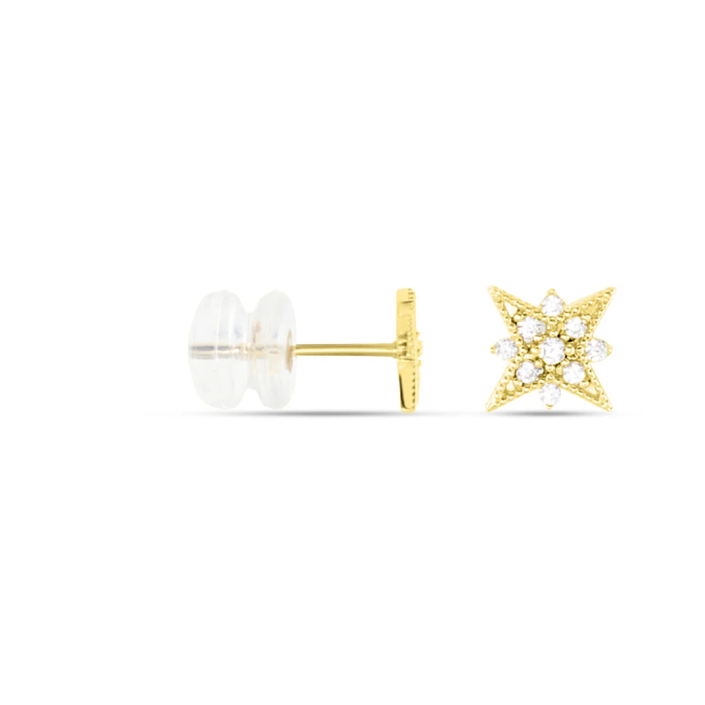 Boucles D’oreilles Puces Or Jaune 375/1000 MĂ©tĂ©orite Oxydes De Zirconium
