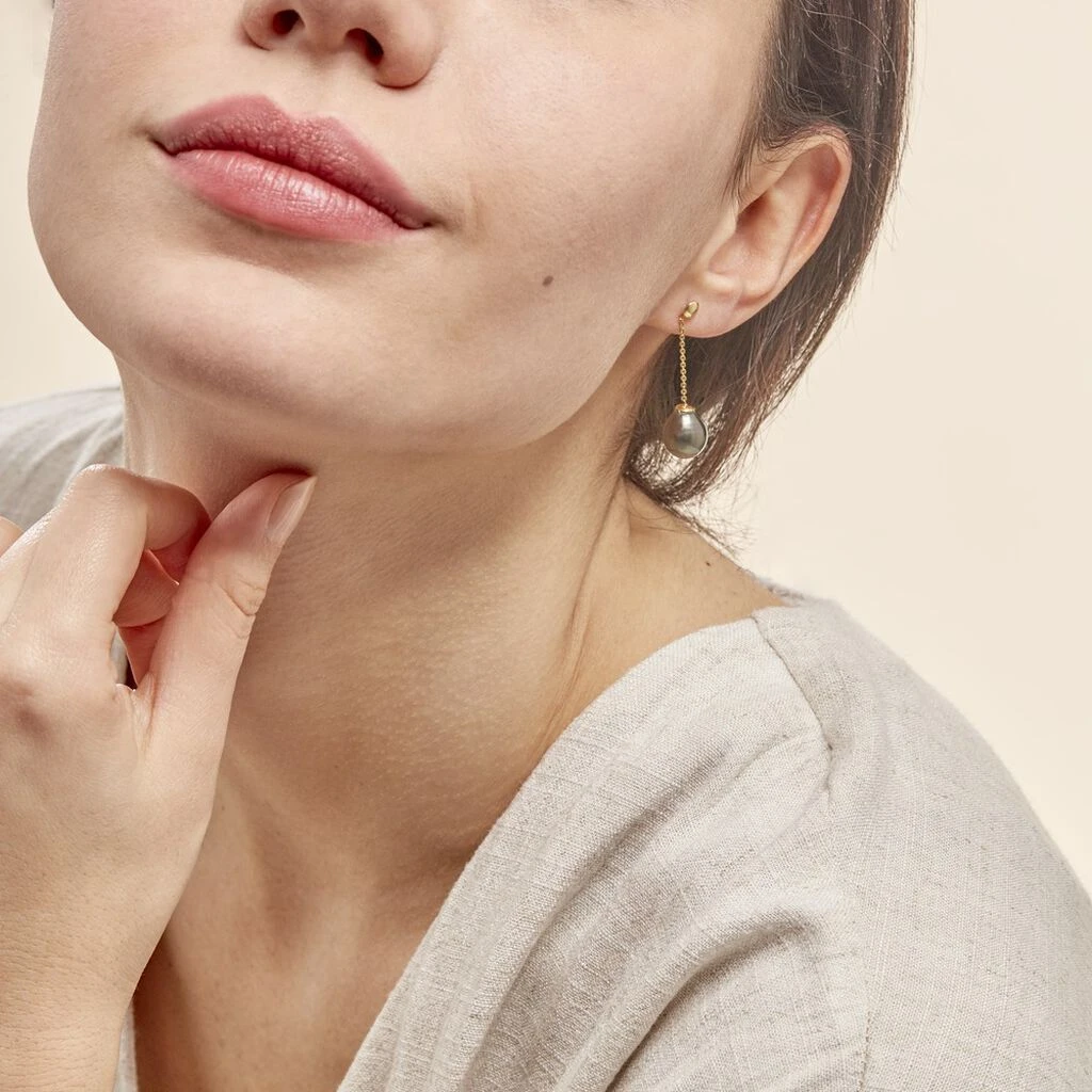 Boucles D’oreilles Puces Marie-noela Or Jaune Perle De Tahiti