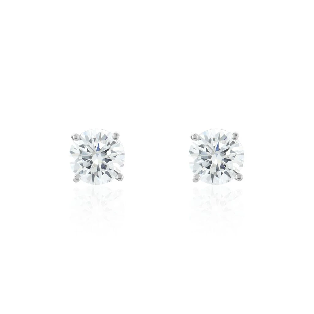 Boucles D’oreilles Puces Or Blanc 375/1000 Oxyde De Zirconium Serti 4 Griffes 6mm