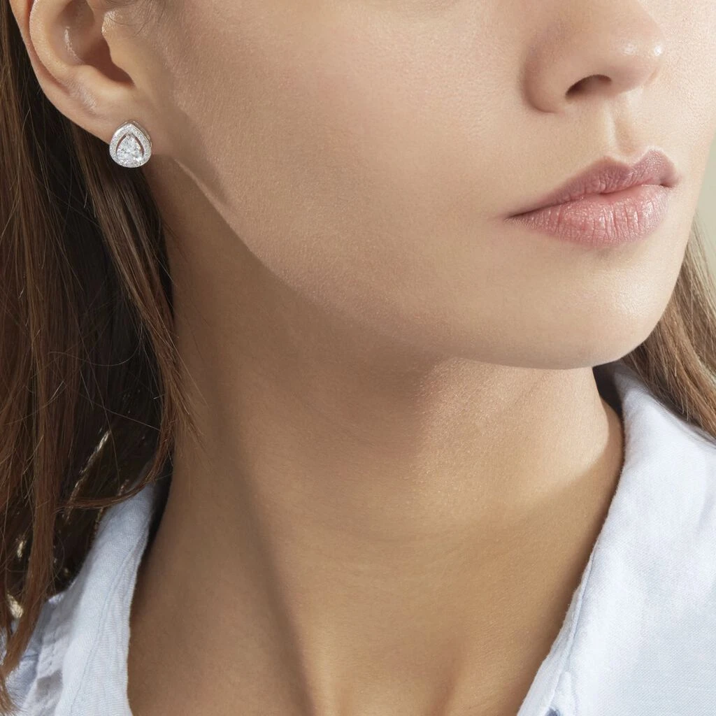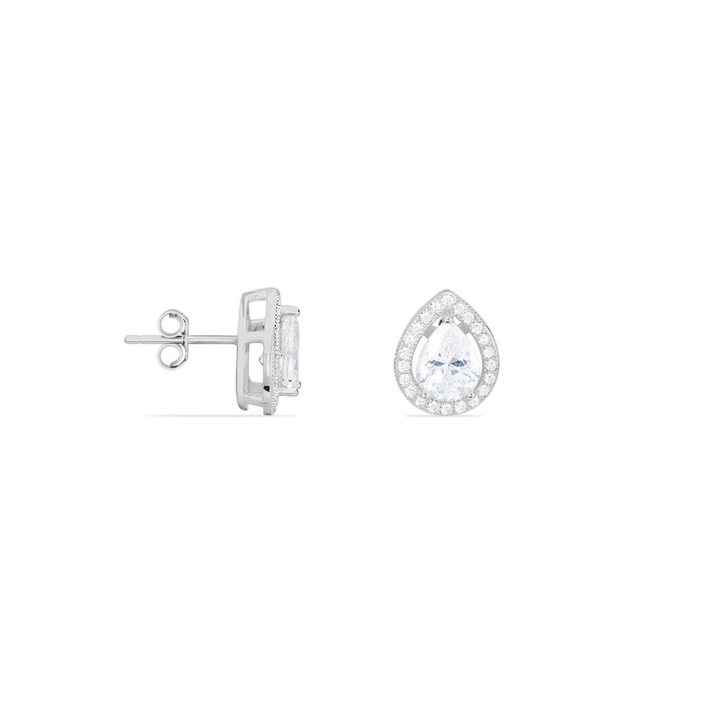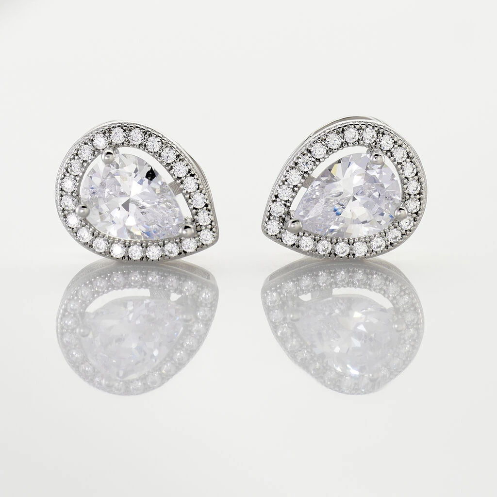 Boucles D’oreilles Argent Blanc 925/1000 Oxydes De Zirconium Central Formes Poires Entourage Oxydes De Zirconium