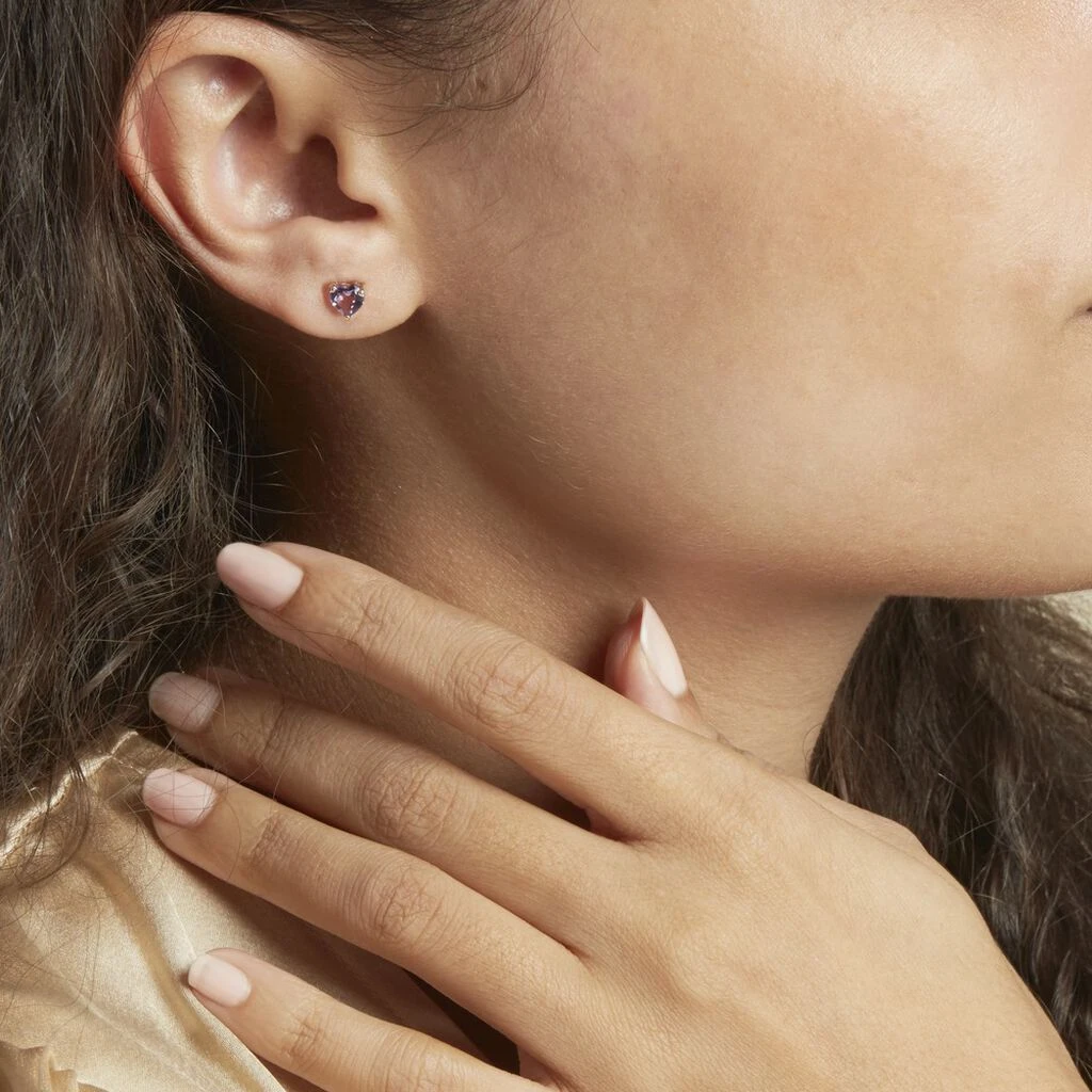 Boucles D’oreilles Puces Or Jaune 375/1000 Cœur Amethyste Serti Griffes 0.8cts