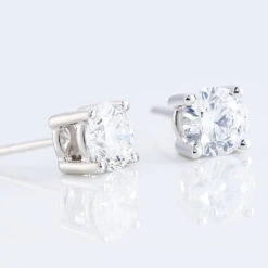 Boucles D’oreilles Puces 4 Griffes Or Blanc Diamant Synthetique