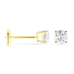 Boucles D’oreilles Puces 4 Griffes Or Jaune Diamant Synthetique