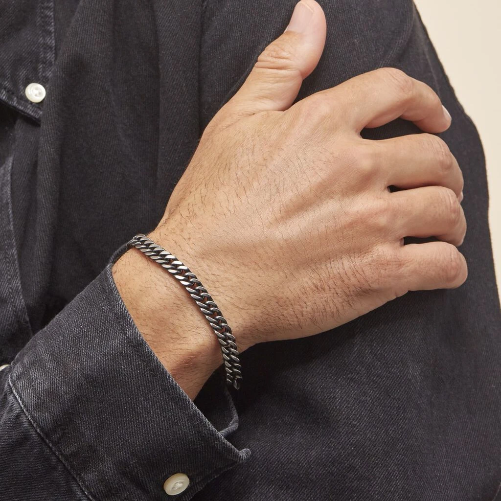 Bracelet Acier Noir Et Gris Maille Gourmette Serree 22cm