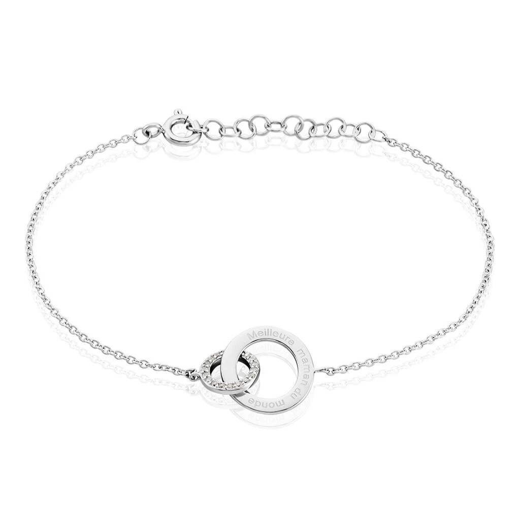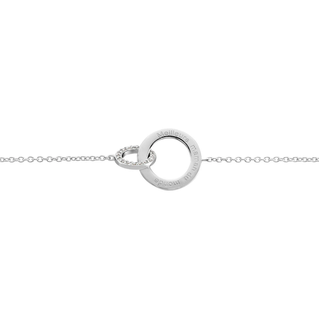 Bracelet Argent Blanc 925/1000 Double Cercle Message Meilleure Maman Du Monde Pavage Oxydes De Zirconium Maille Forçat 19cm