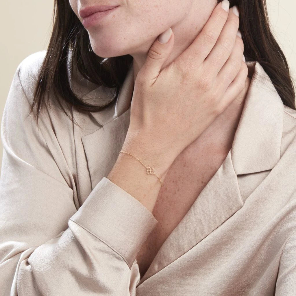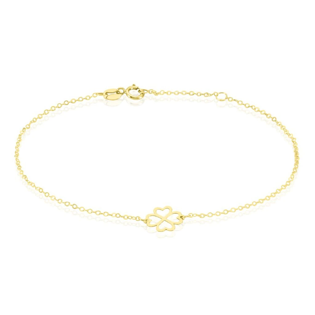 Bracelet Or Jaune 375/1000 Trefle Maille Forcat 16/18cm