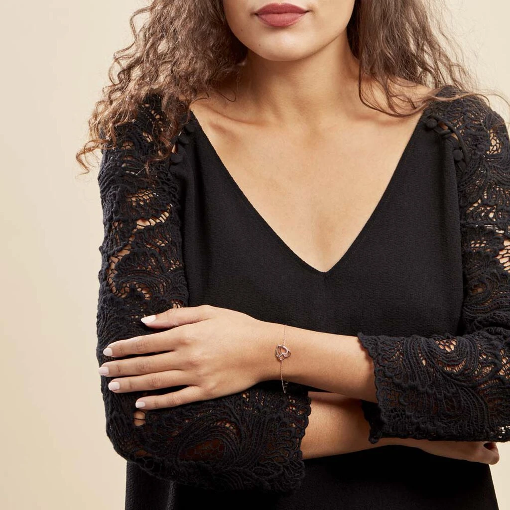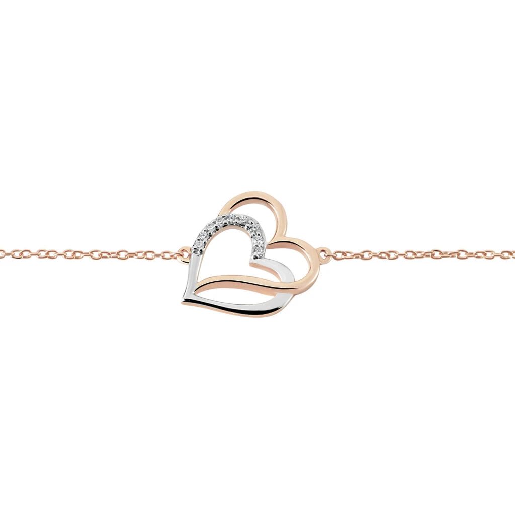 Bracelet Argent Bicolore 925/1000 Cœurs Entrelaces Pavage Oxydes De Zirconium Maille Forcat 18.5cm
