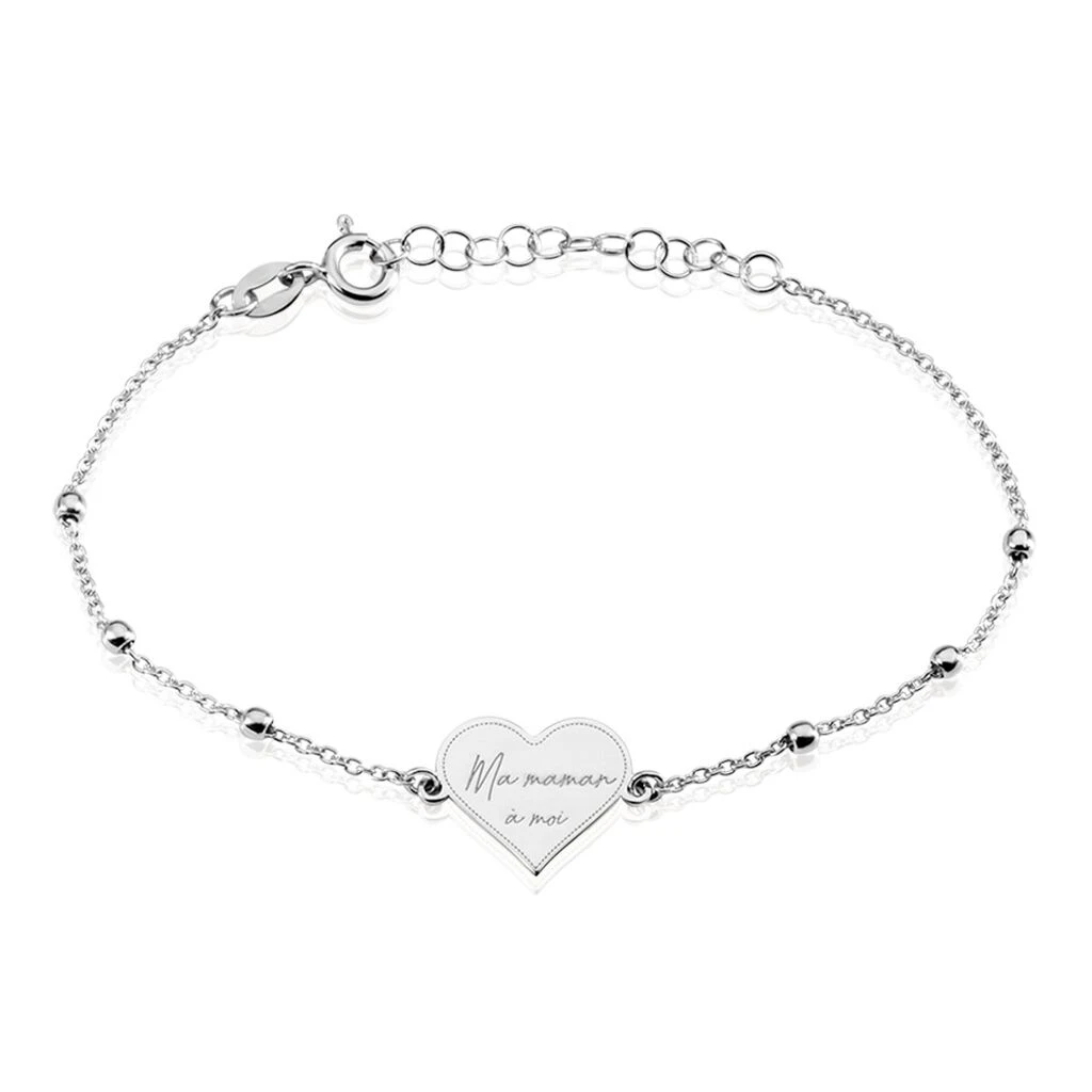 Bracelet Argent Blanc 925/1000 Cœur Gravée Ma Maman A Moi Maille Boules 16+3cm
