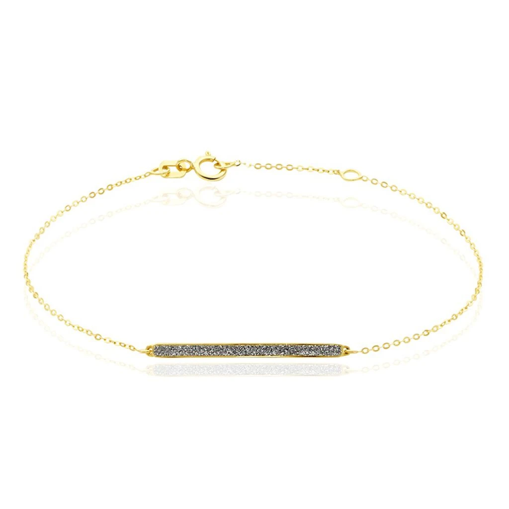 Bracelet Or Jaune 375/1000 Effet Brillant Glitter Maille Jaseron 18cm