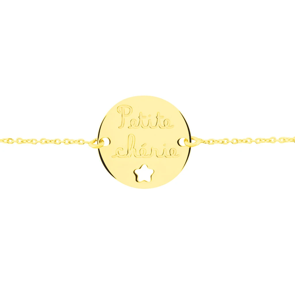 Bracelet Or Jaune 375/1000 Pastille Message Petite Cherie Maille Jaseron 14cm
