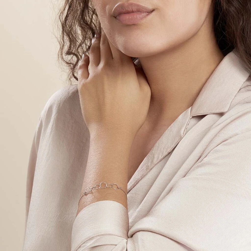 Bracelet Argent Blanc 925/1000 Multi Cercles Effet Diamante Maille Paloma 19cm