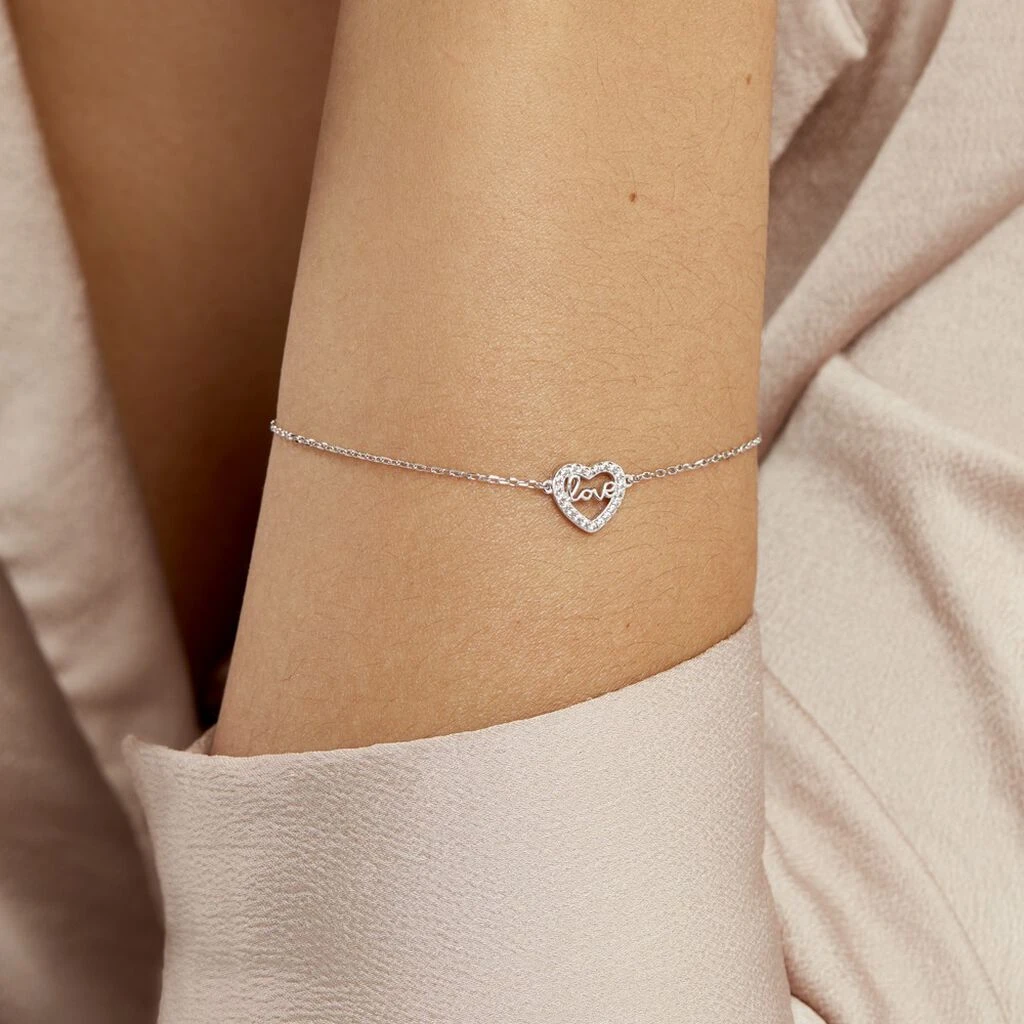 Ce bracelet en argent 925/1000ème dégage un charme particulier. Vous allez adorer son motif cœur ajouré agrémenté d’un pavage d’oxyde de zirconium avec une inscription « Love » à l’intérieur. Cet accessoire dispose d’une chaîne à maille forçat et d’un fermoir de type anneau ressort.