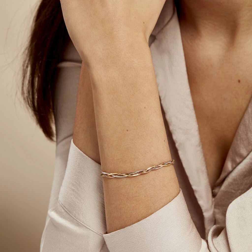 Ce bracelet en argent 925/1000ème séduit du premier coup d’œil par son design original. Il est caractérisé par une maille serpent tressée. Bijou classique, ce bracelet convient pour compléter toutes les tenues, quel que soit le style que vous adoptez. Existe dans d’autres couleurs, unies, en deux tons.