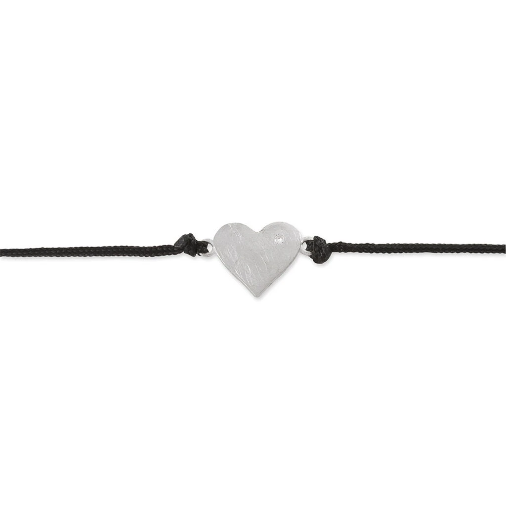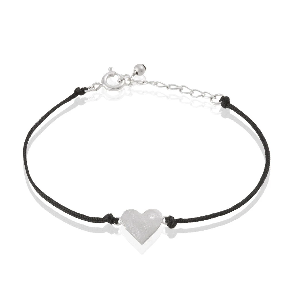 Bracelet Argent 925/1000 Cœur Oxyde Noir Sur Cordon Noir