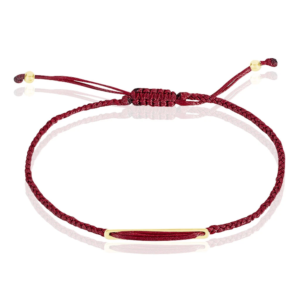 Bracelet Argent Dore 925/1000 Cordon Rouge Ajustable