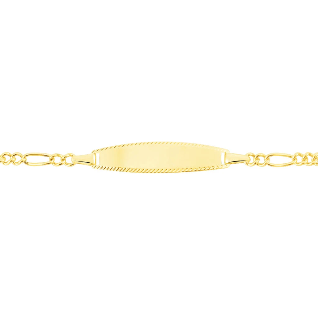 Bracelet Or Jaune 750/1000 Identite Bebe Maille Alternee Plaque Ovale Ciselee 15cm