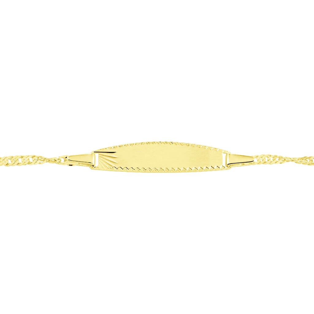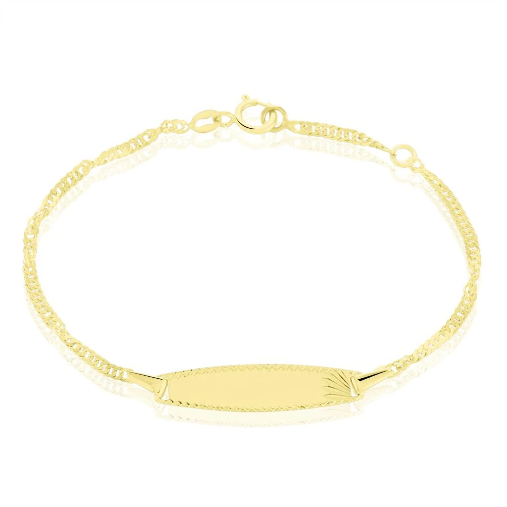 Bracelet Identité Bebe Or Jaune 375/1000 Plaque Rectangle Maille Fantaisie 14cm