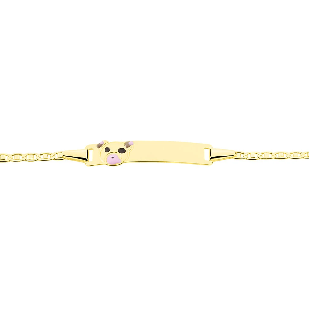 Bracelet Identite Bebe Or Jaune 375/1000 Plaque Rectangle Tricolore Ours Laque Maille Chemin De Fer 12/14cm