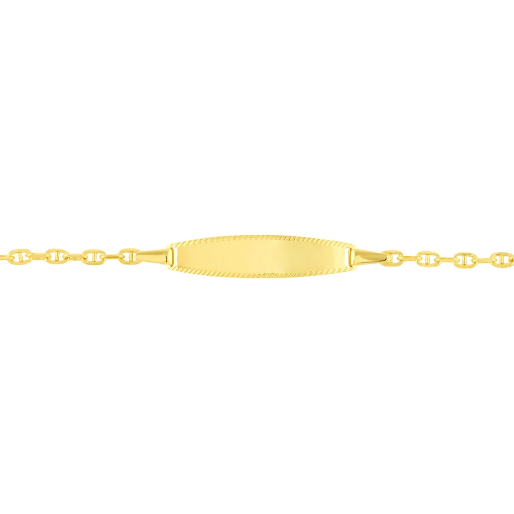 Bracelet Identite Bebe Or Jaune 375/1000 Plaque Ovale Ciselee Maille Marine 13/15cm
