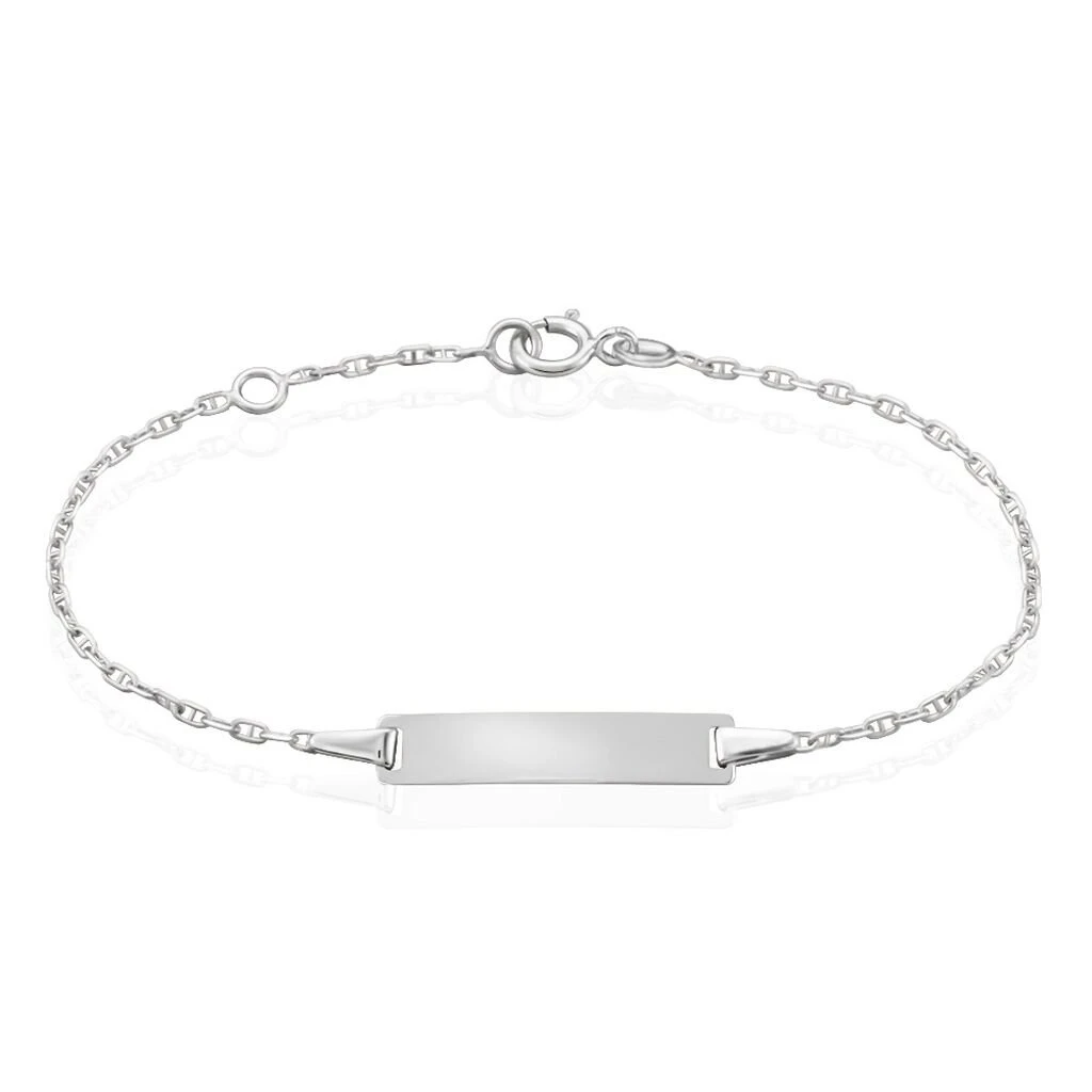 Bracelet Identite Bebe Or Blanc 375/1000 Plaque Rectangle Maille Forcat Marine 12/14cm