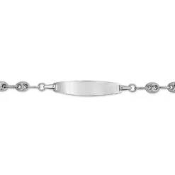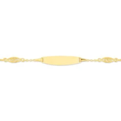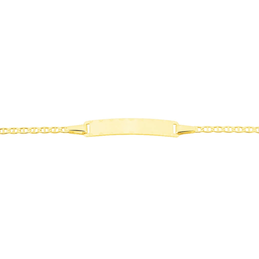 Bracelet Identite Bebe Or Jaune 375/1000 Plaque Rectangle Ciselee Maille Forcat Marine 12/14cm