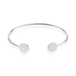 Bracelet Jonc Argent Blanc 925/1000 Ouvert Double Pastilles Pavage Oxydes De Zirconium 6*5cm