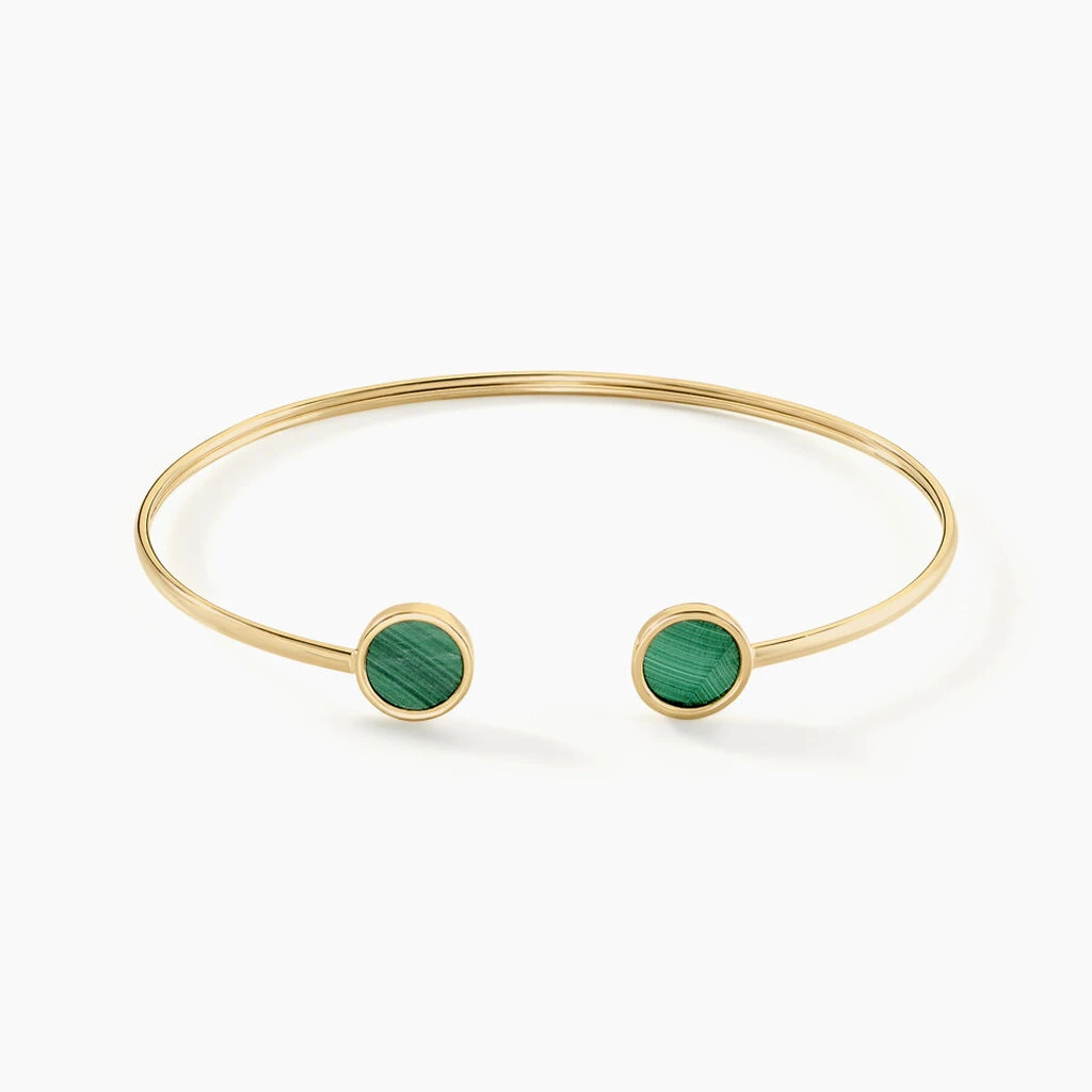 Bracelet Jonc Or Jaune 375/1000 Double Pastilles Malachite