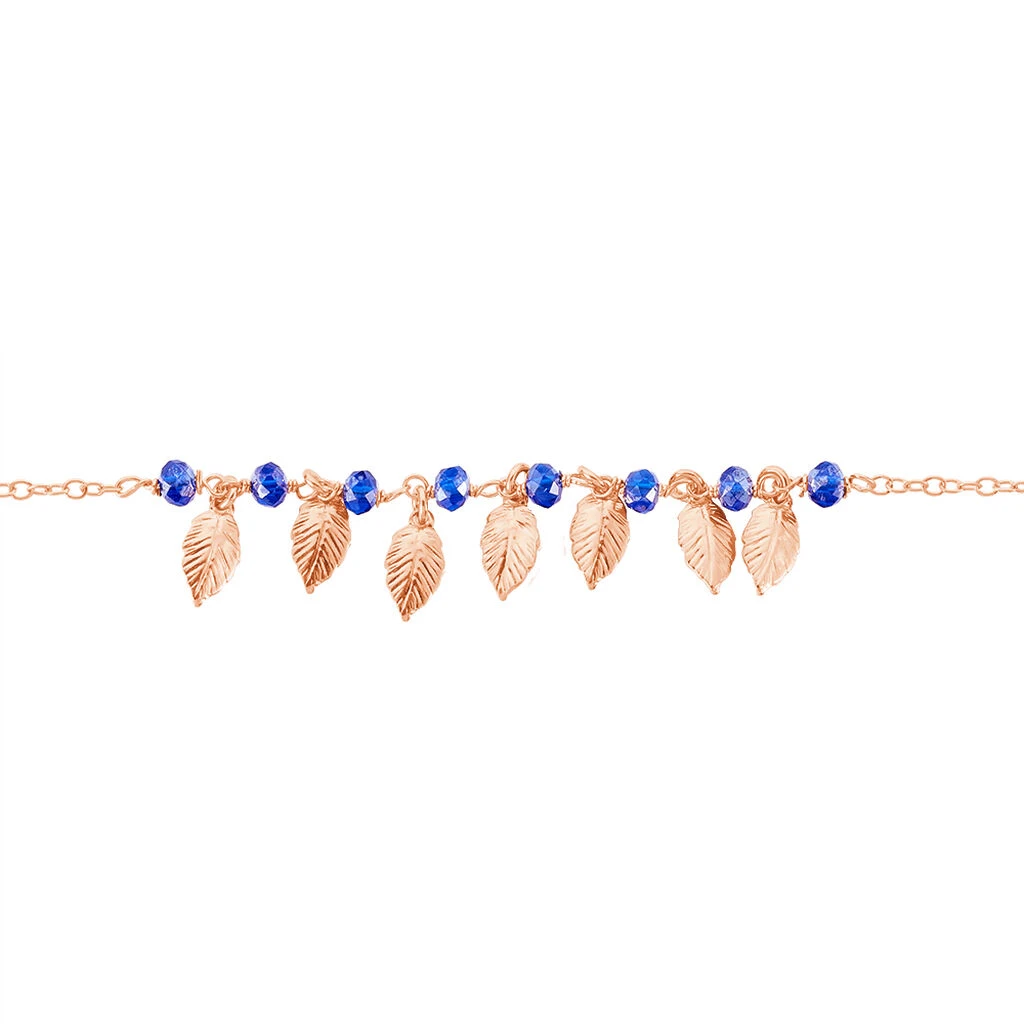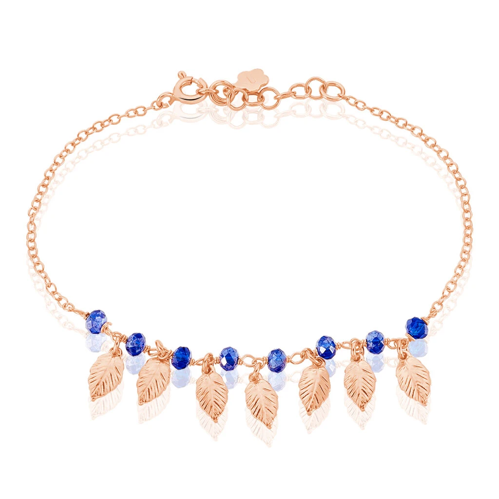 Bracelet Argent Rose 925/1000 Feuilles Style S + Pierres Bleues 18cm