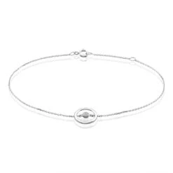 Bracelet Or Blanc 375/1000 Forme Cercle Pavage Diamants Central Maille Forçat 18cm