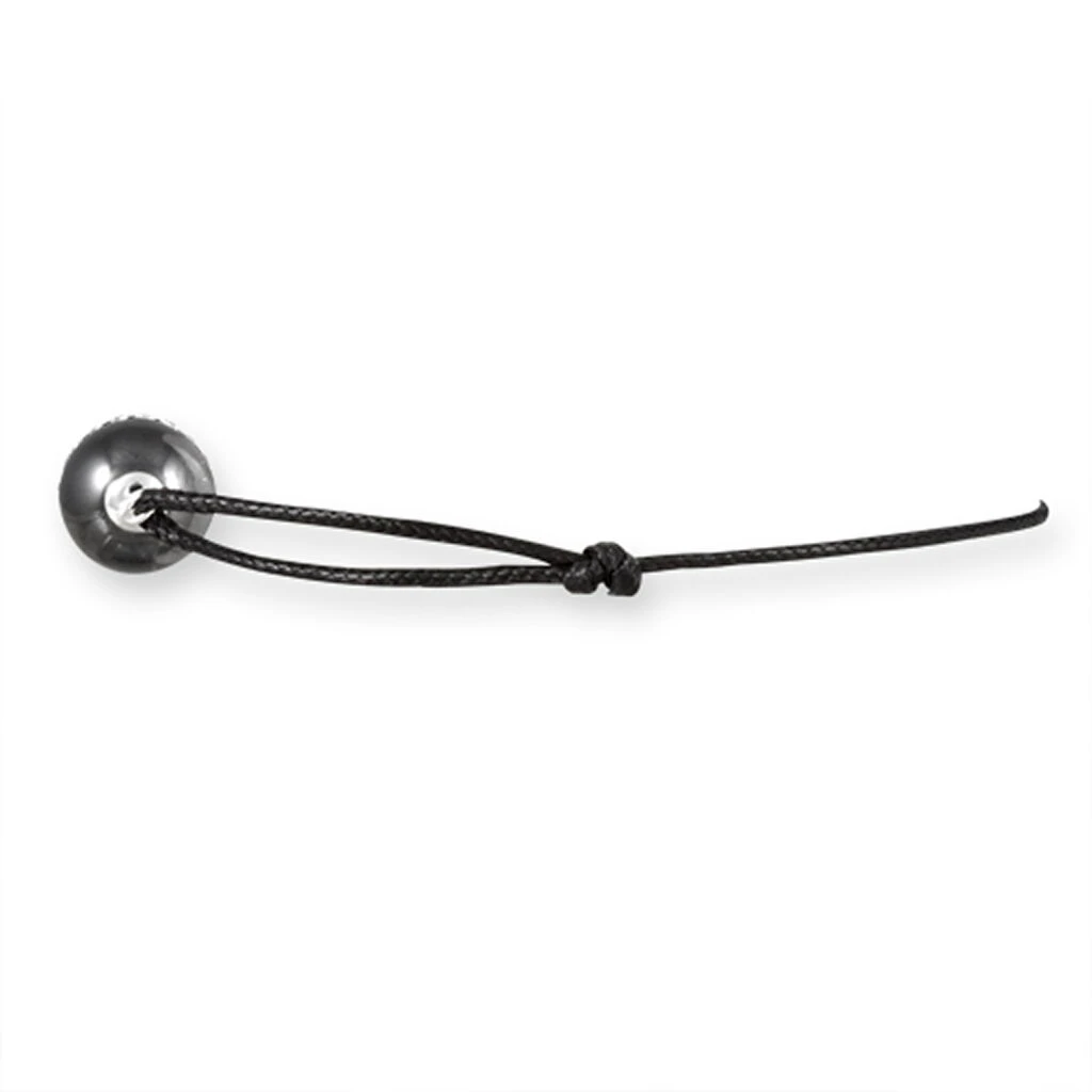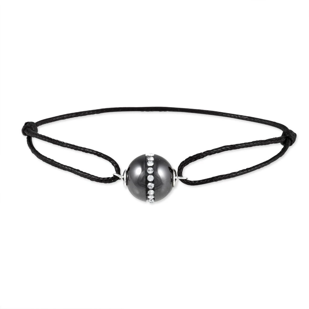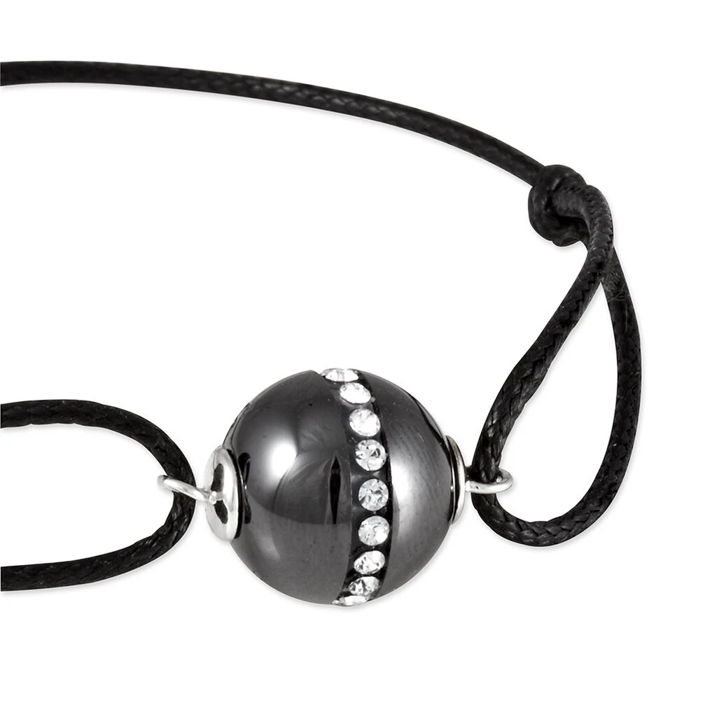 Bracelet Argent 925/1000 Boule Ceramique Noire Lisse Pierres Blanches Sur Cordon Noir