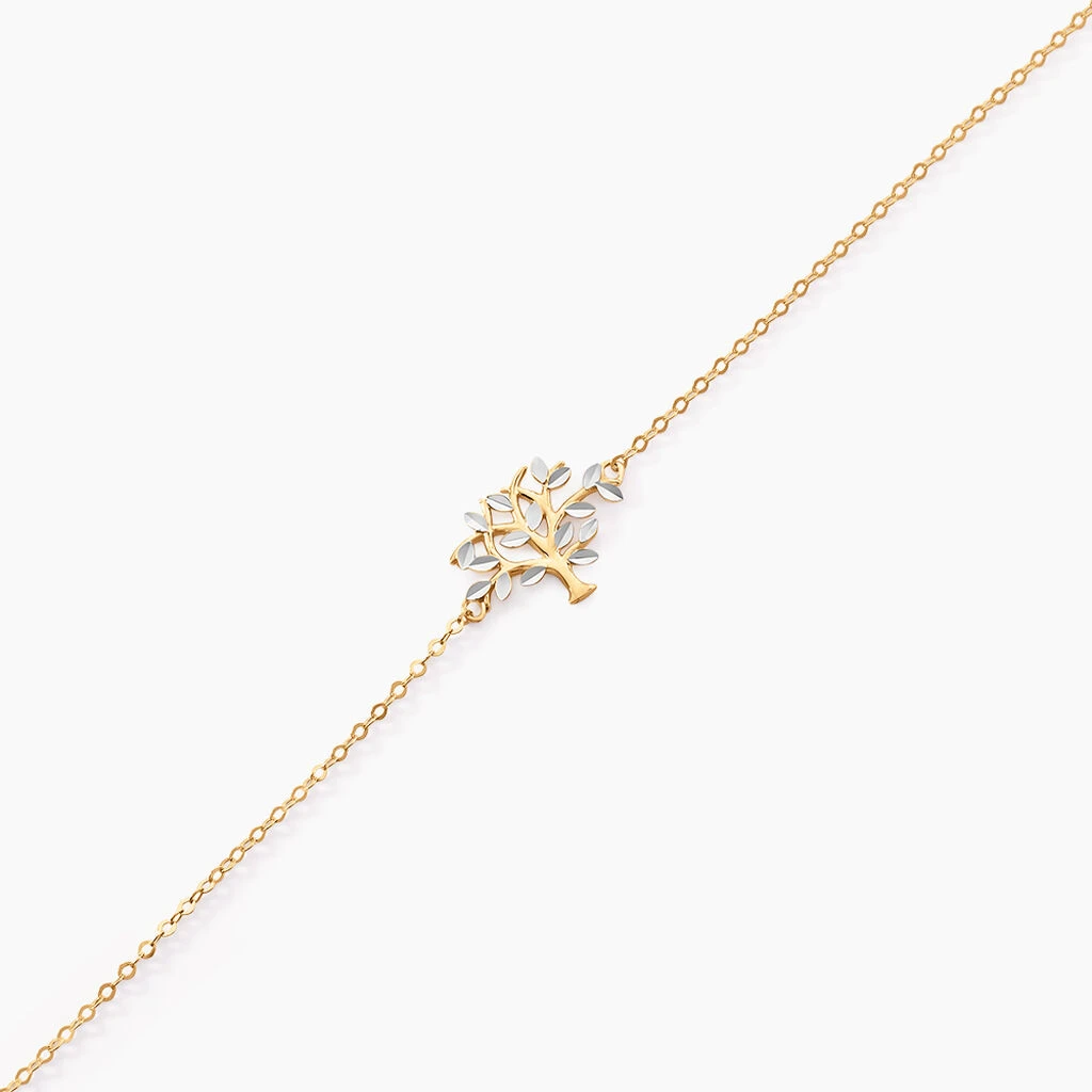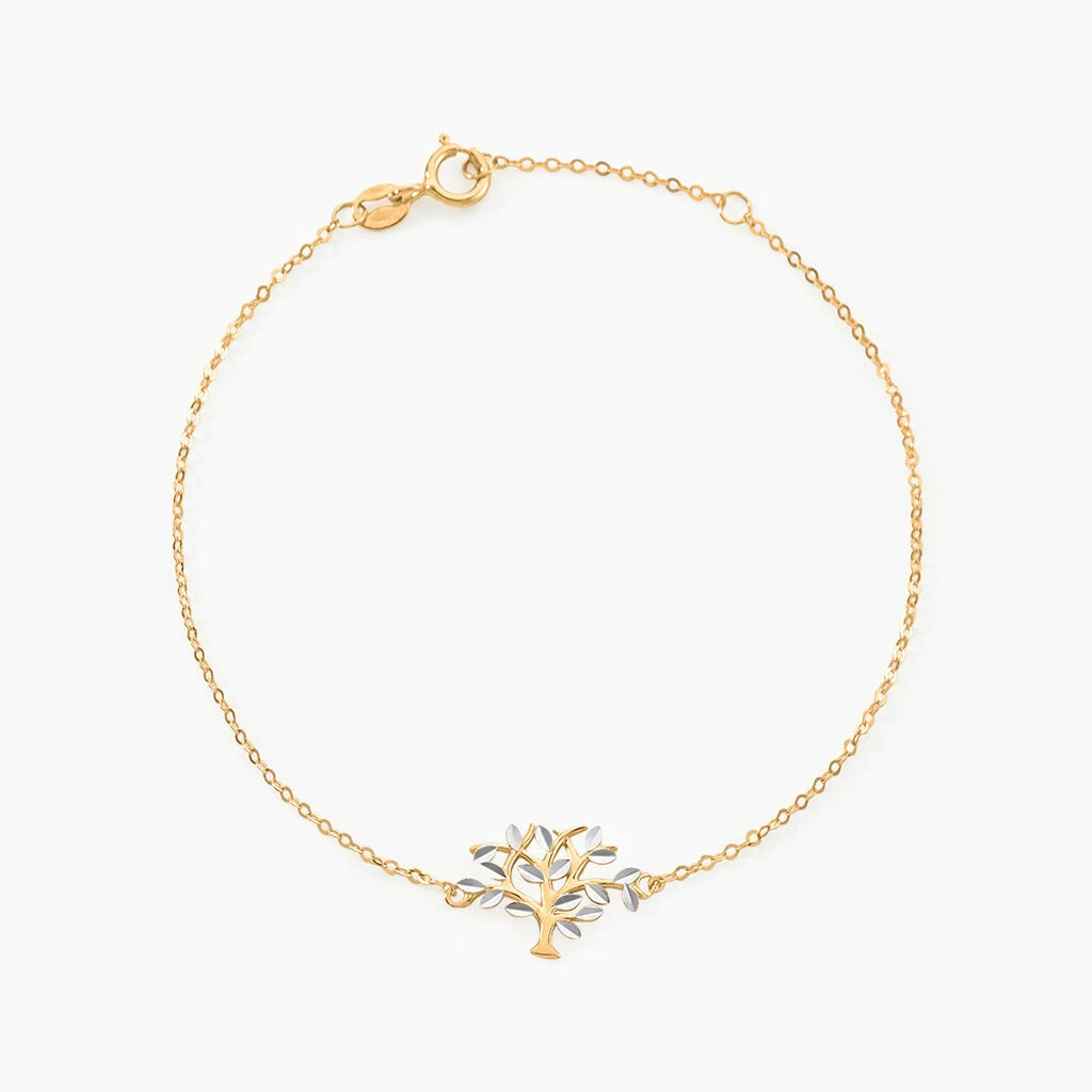 Bracelet Or Bicolore 375/1000 Arbre De Vie Maille Forcat 16/18cm
