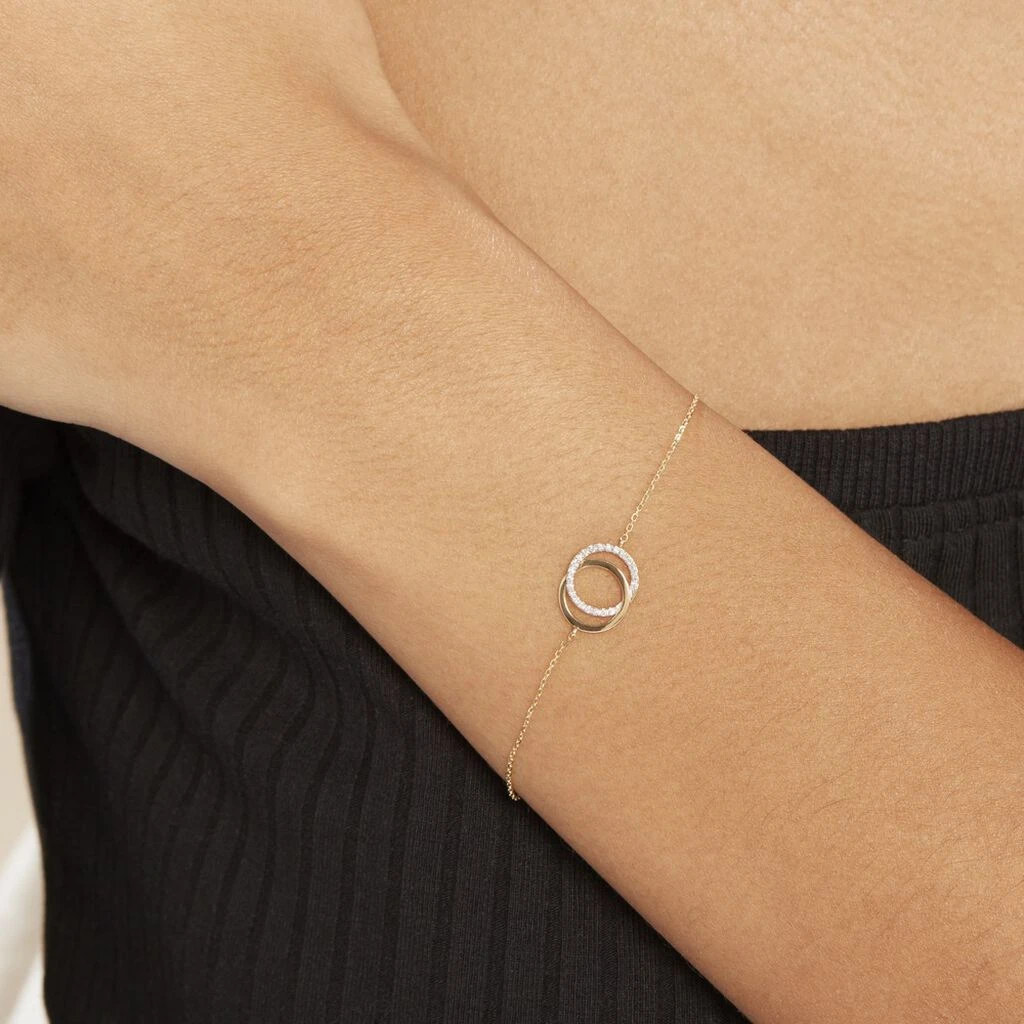 Bracelet Or Jaune 375/1000 Forme Cercles Entrelaces Diamants 16+2cm