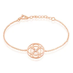 Bracelet Argent Rose Cercle Ajoure Motifs Ovales Oxyde Central 18.5cm