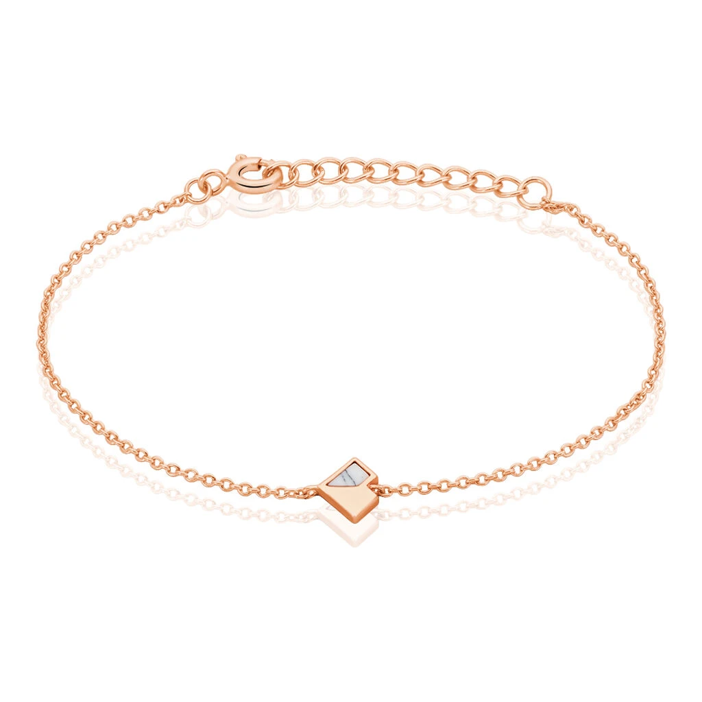 Bracelet Argent Rose 925/1000 Motif Cœur Geometrique Turquoise Blanche 16cm