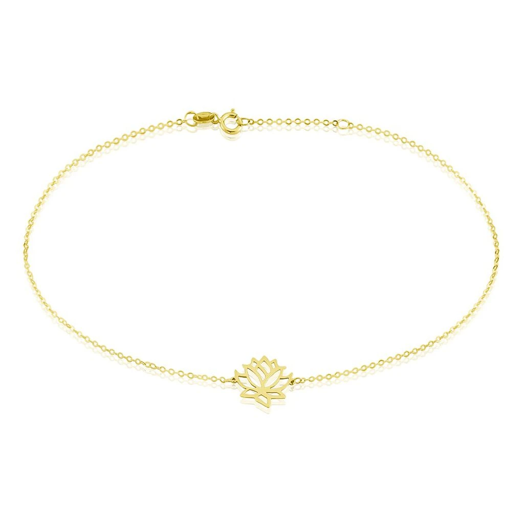 Chaine De Cheville Or Jaune 375/1000 Fleur De Lotus Maille Forçat 22+2cm