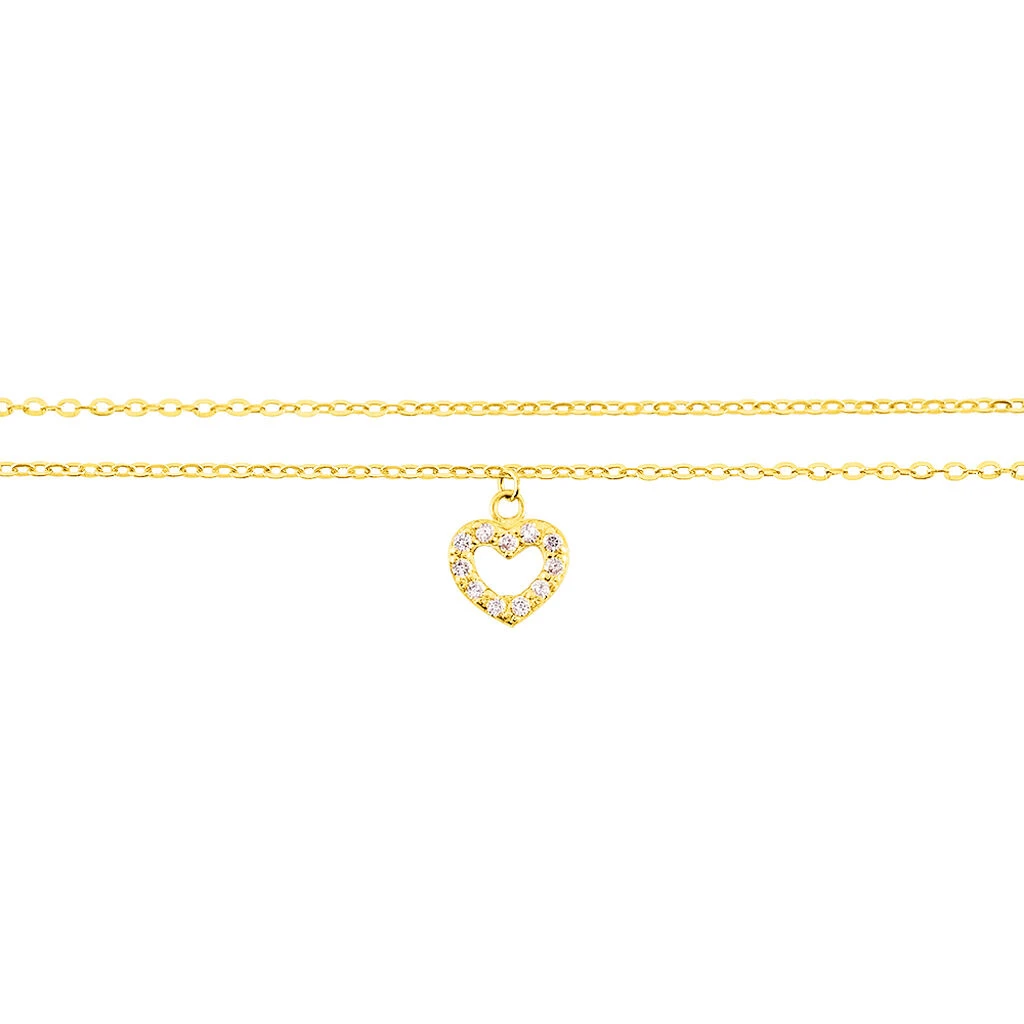 Chaine De Cheville Or Jaune 375/1000 Motif Coeur Maille Jaseron 24cm