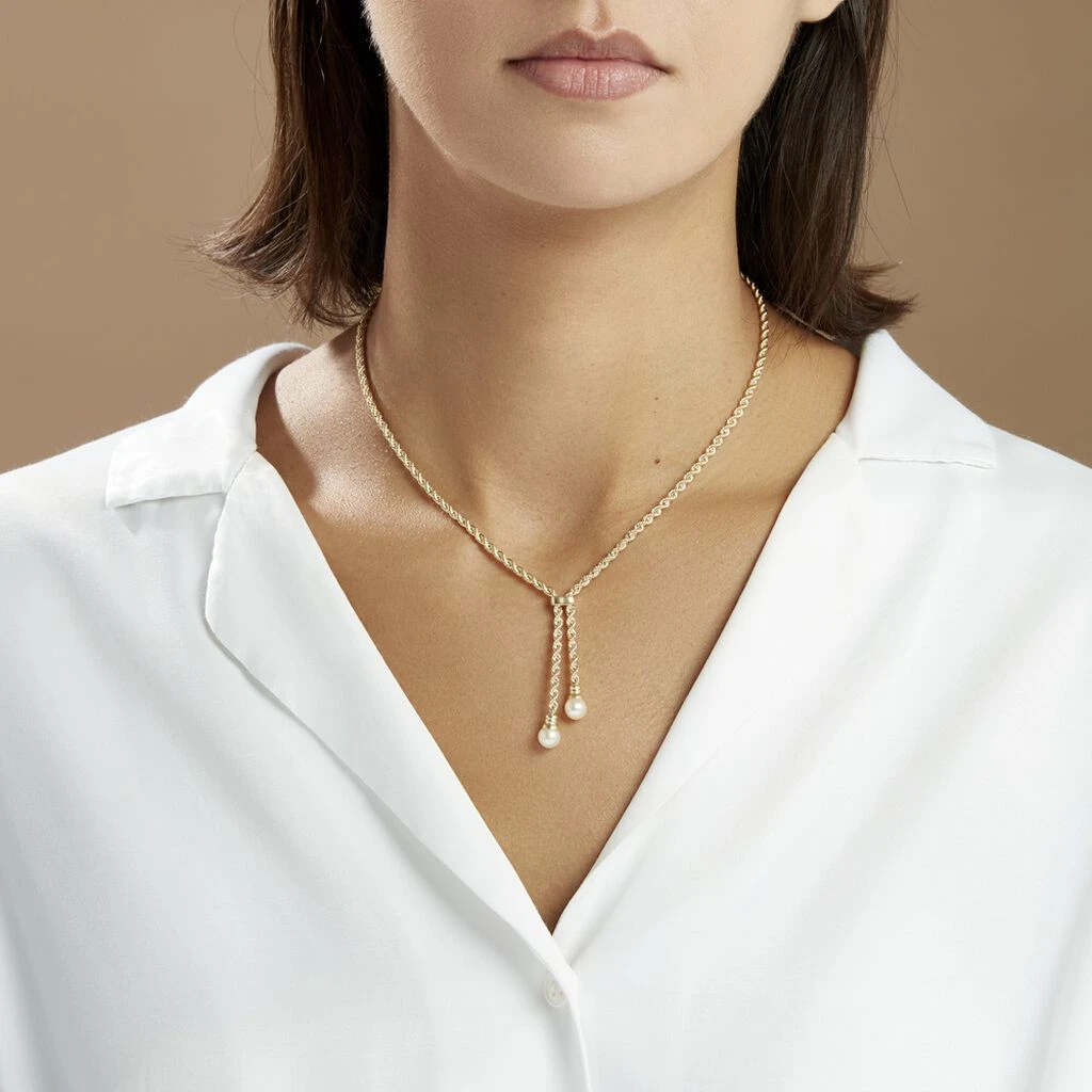 Collier Or Jaune 375/1000 Maille Corde 3mm Perles De Culture 6mm 42cm