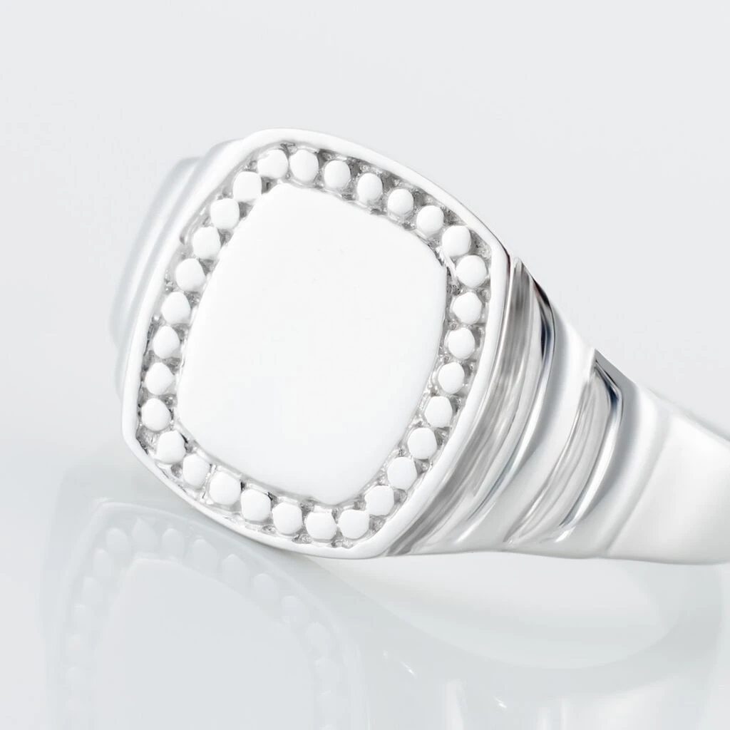 Chevalière Argent Blanc 925/1000 Carrée Effet Perlé
