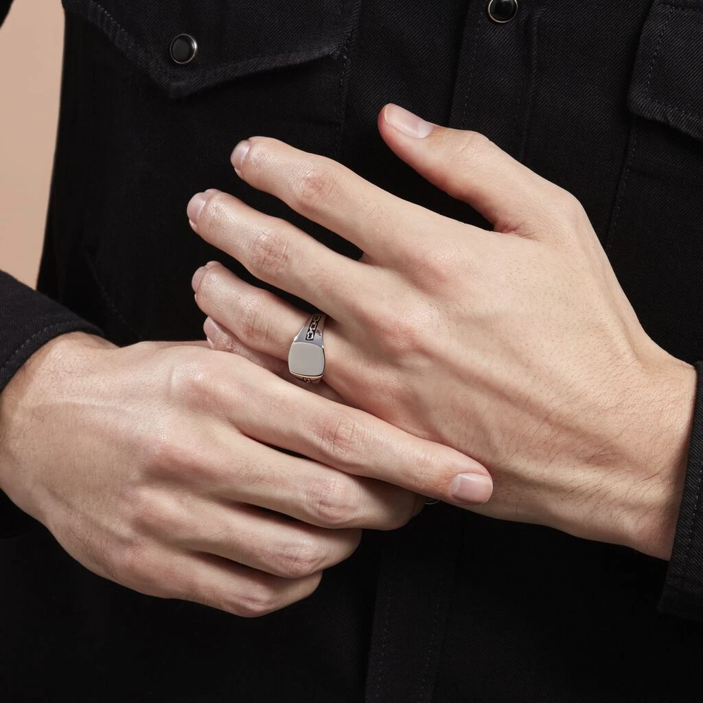 Chevaliere Argent Blanc 925/1000 Carrée Corps De Bague Maillons