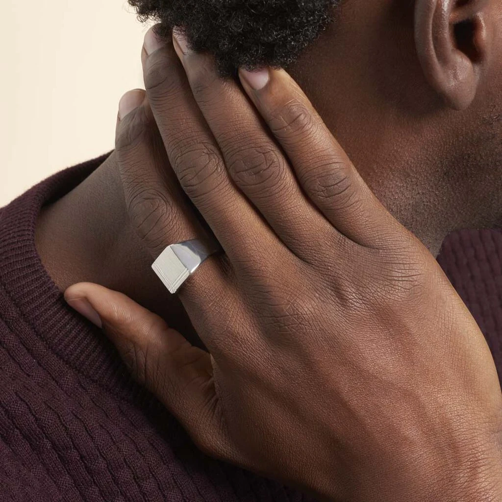 Chevaliere Argent Blanc 925/1000 Plateau Carre Cisele Encadre Gm