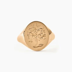 Chevaliere Plaqué Or Jaune Plateau Ovale Arbre De Vie