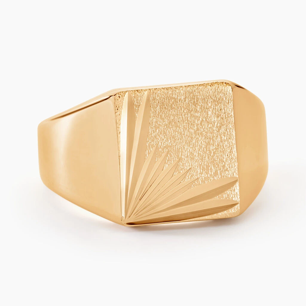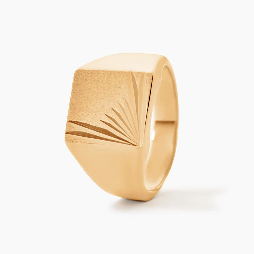 Chevaliere Plaqué Or Jaune Plateau Carre Lisse Soleil