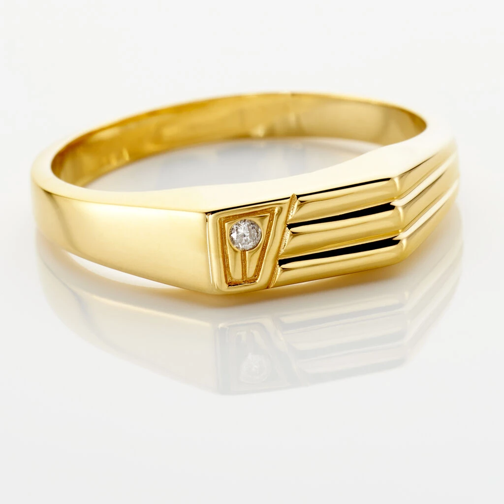 Chevaliere Or Jaune 375/1000 Forme Rectangle Serti Diamant