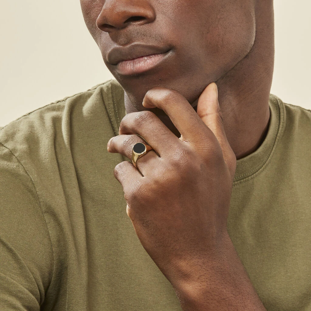 Chevelière Or Jaune 375/1000 Plateau Ovale Lisse Onyx Noir Gm