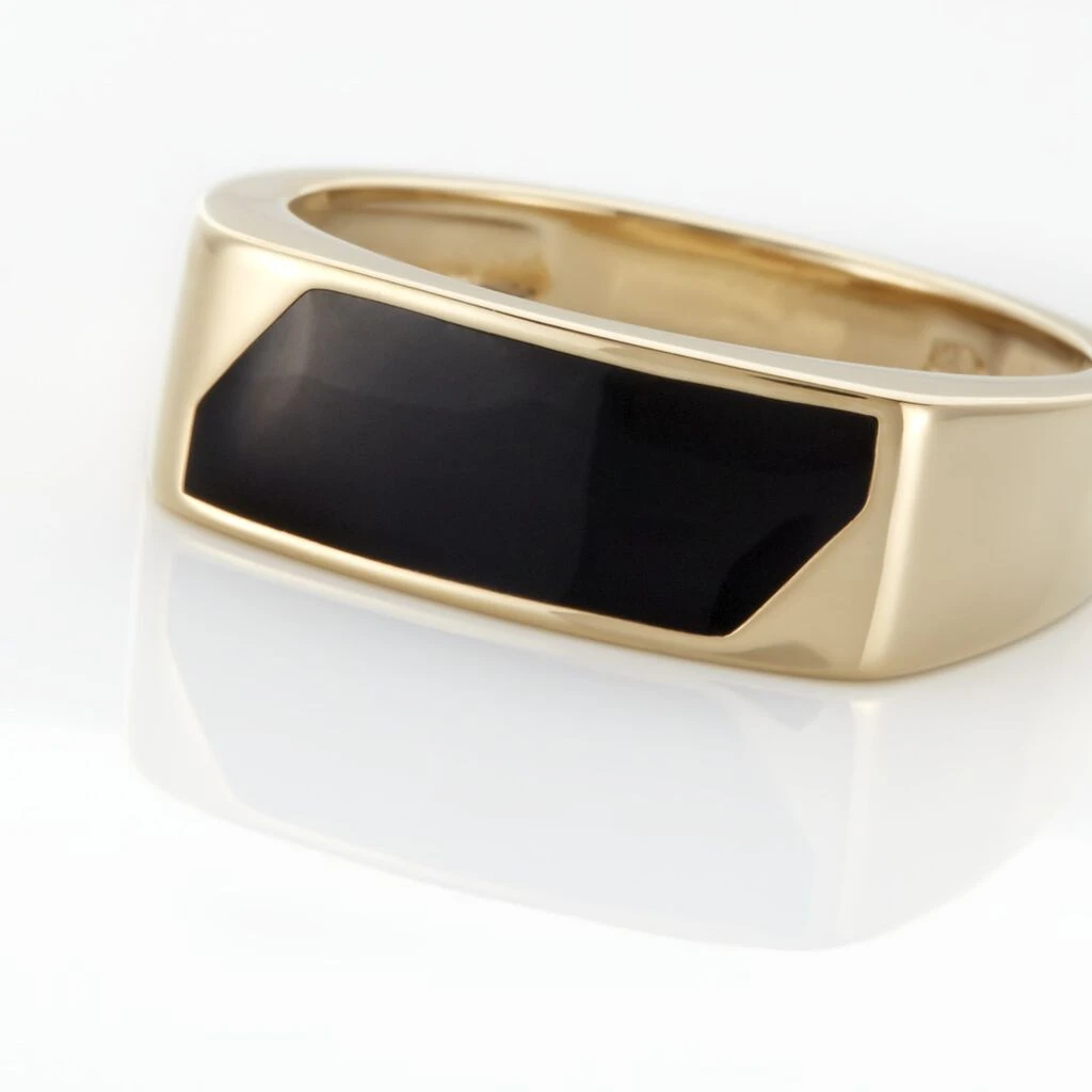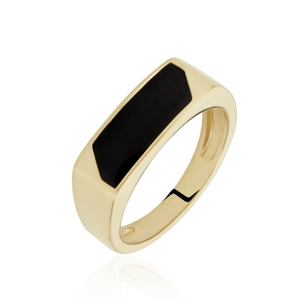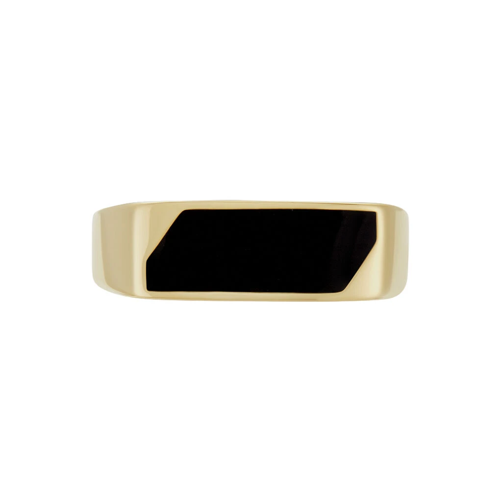 Chevaliere Plaque Or Jaune Plateau Rectangle Email Noir