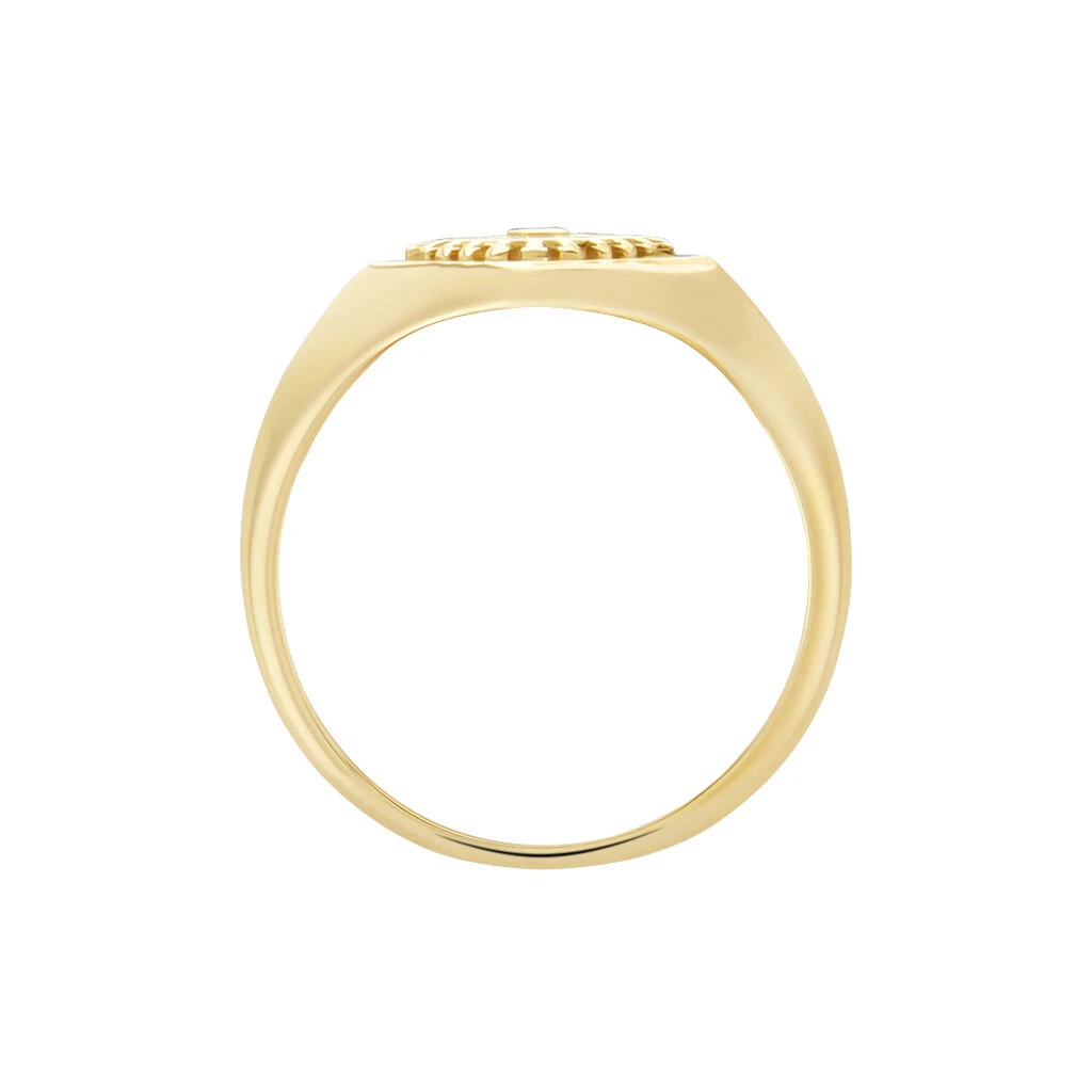 Chevaliere Plaque Or Jaune Plateau Losange Motif œil Oxyde De Zirconium Serti Clos