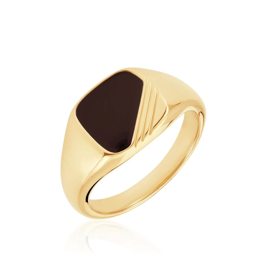 Chevalière Plaqué Or Jaune Nelson Email Noir