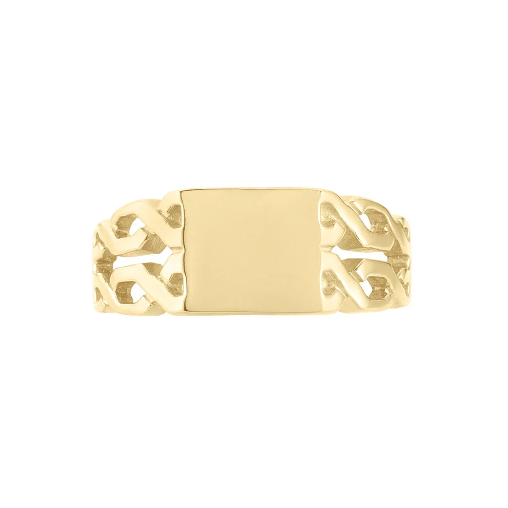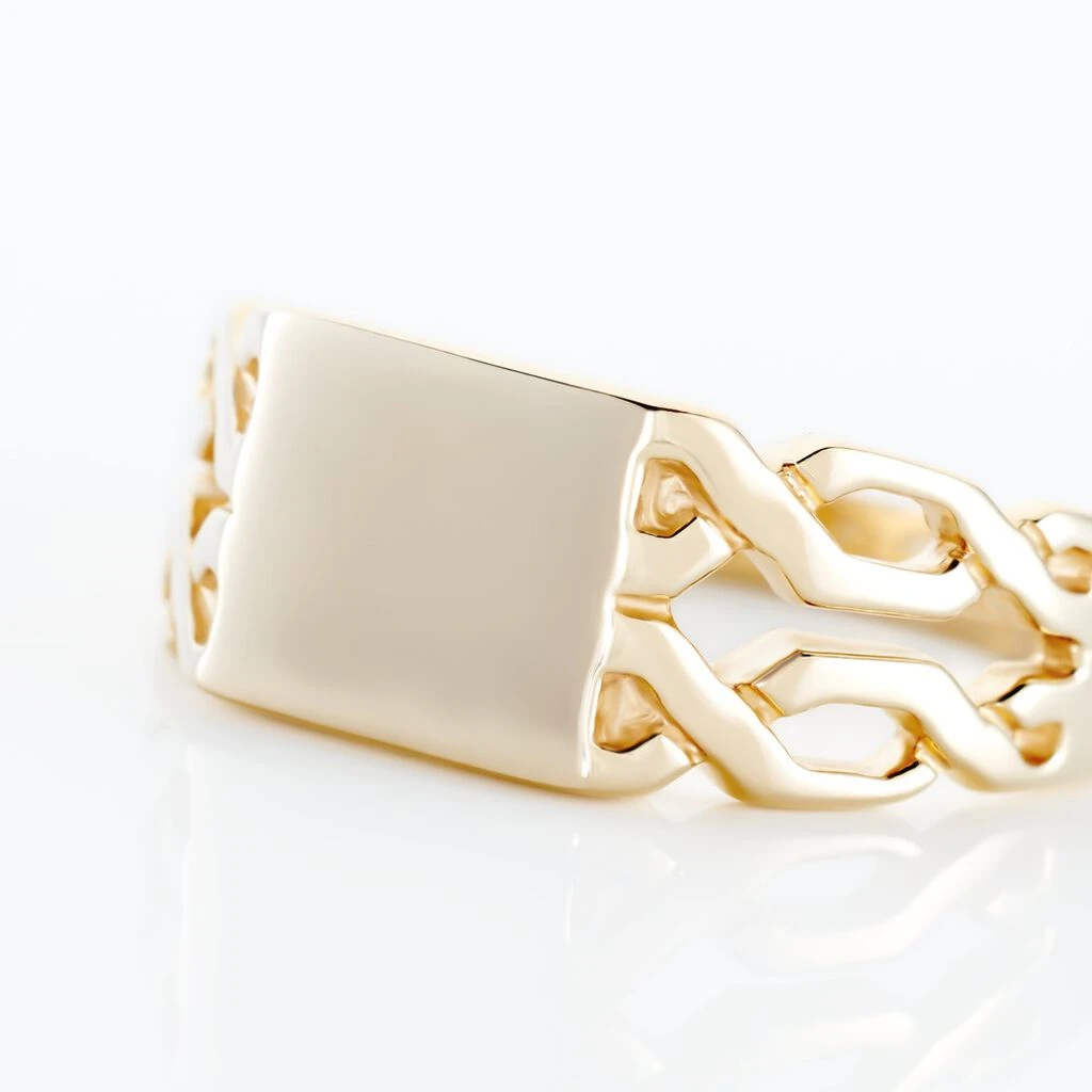 Chevalière Plaqué Or Jaune Plateau Rectangle Corps De Bague Maillons