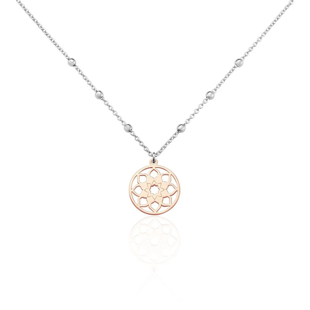 Collier Argent Bicolore 925/1000 Rosace Maille Boules 42+3cm