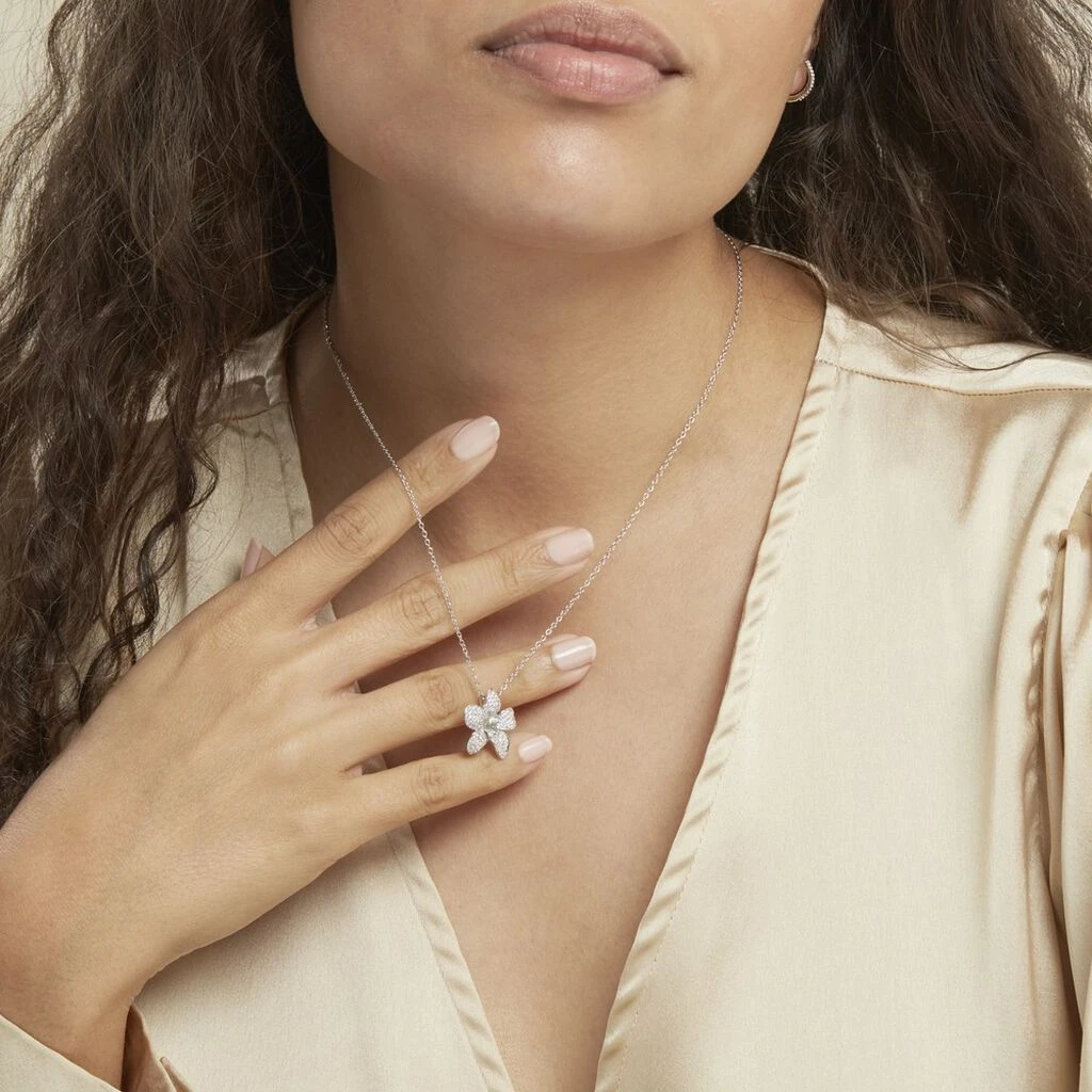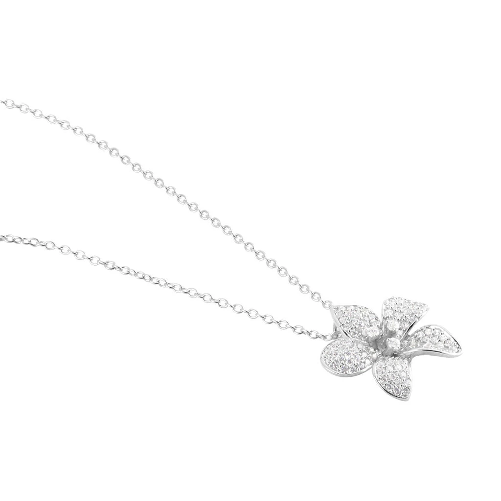 Collier Argent Blanc 925/1000 Fleur Pavage Oxydes De Zirconium Maille Forçat 45cm